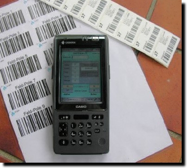 Auf jedem Feld bzw. beim Kontrolleur sind Etikettenrollen mit fortlaufenden Strichcodes platziert. Alle Etiketten können vor der Saison ausgedruckt werden, was möglichen technischen Problemen in der Saison vorbeugt. Außerdem kann der dann ja vorhandene Etikettendrucker auch für andere Zwecke verwendet werden.